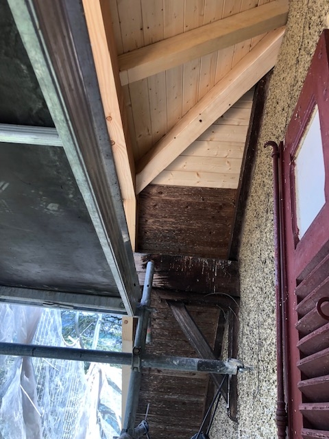 Les passées de toiture étaient pour certaines très abimées par l’humidité venue de l’ancienne végétation et par les becs des oiseaux cherchant nid et refuge.