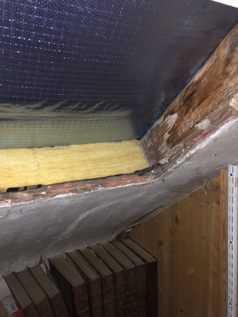 Les éléments d’ornement de la charpente d’époque sont assainis et protégés.