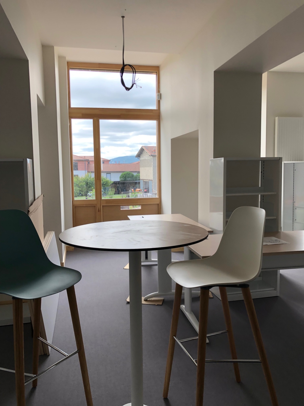 La commune de Genilac souhaitait modifier la bibliothèque municipale existante, devenue trop petite en une médiathèque avec un plus fort rayonnement. Cet équipement a trouvé sa place en rez de chaussée de l’ancien groupe scolaire public, dans le programme de rénovation extension du bâtiment.
