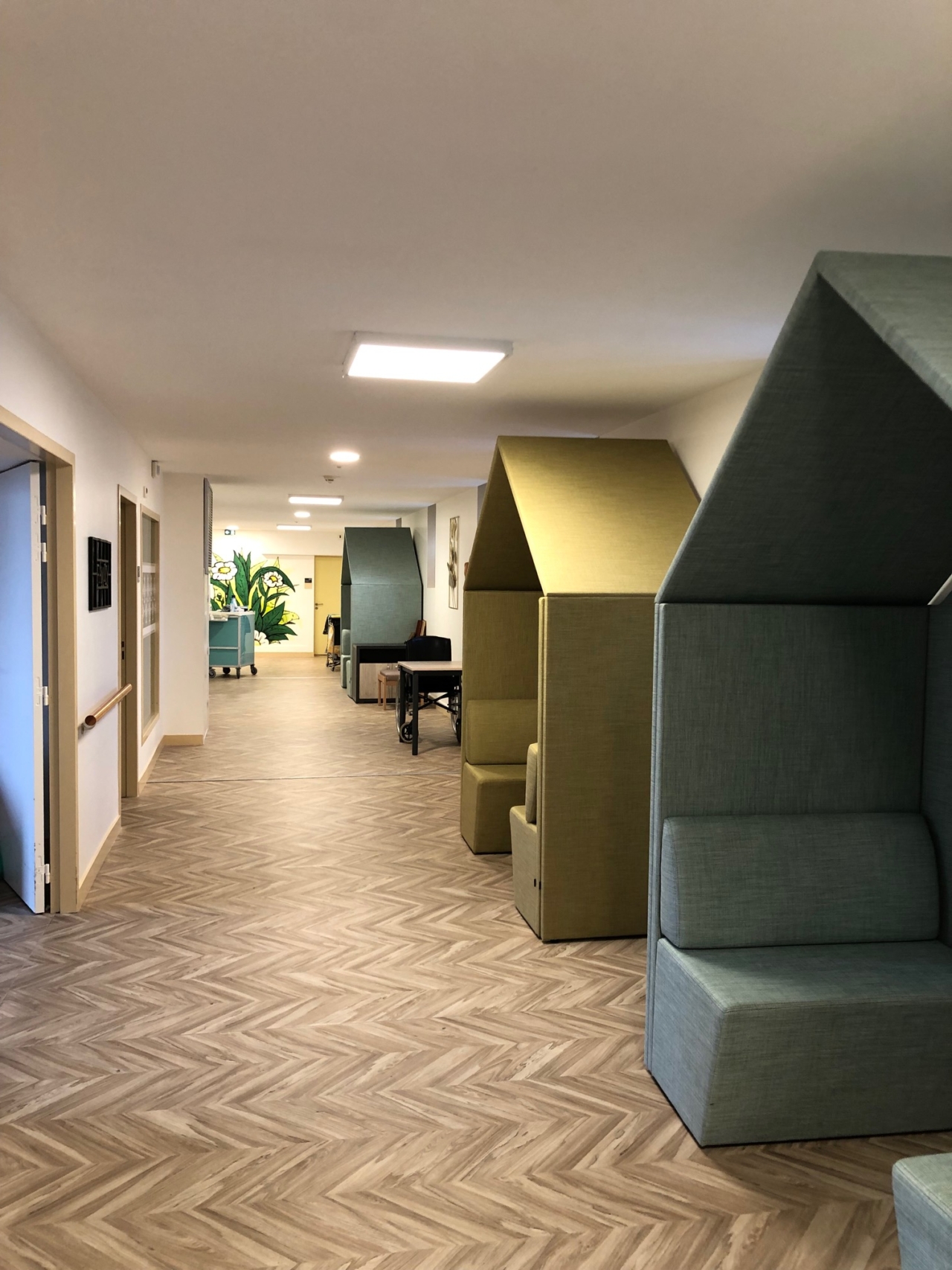 Rénovation totale de l’unité de soin de l’EHPAD Maison Thérèse Couderc à Lyon 5. Le service accueille des résidentes présentant des symptômes de la maladie d’Alzheimer.