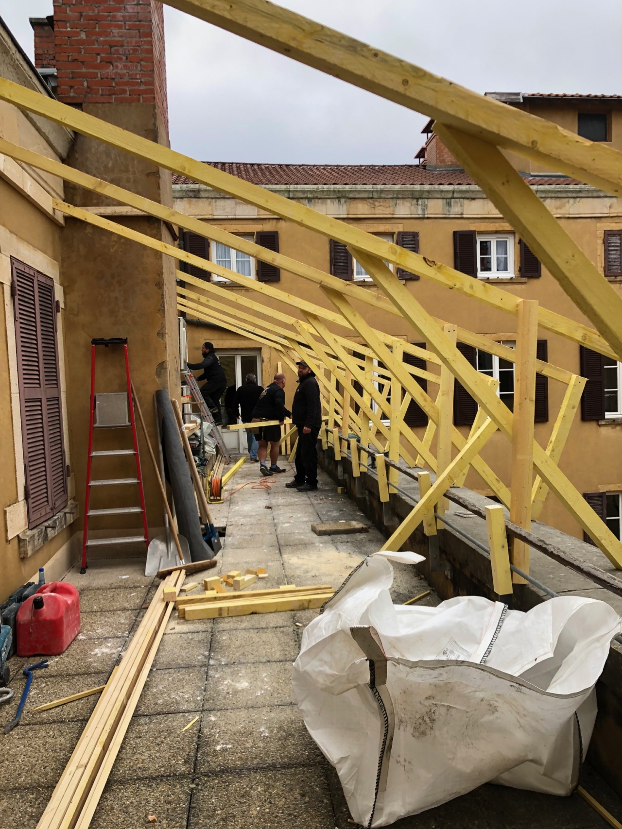 Pour la réalisation du projet, nous équipons la terrasse d’une protection durant le chantier. Les travaux se déroulent en site occupé. Toutes les résidentes sont présentes sur le site.
